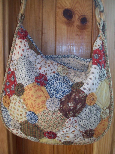 Jo-jo patchwork neboli Suffolkská kolečka je vzor velmi populární již od počátku 20. století, je velmi snadný a práce s ním je zábavná. Šije se v ruce a je vhodný k jakémukoli použití, též k dozdobování např. polštářků nebo kabelek tak, jak je na obrázku. Vyzkoušíte si i další tvary např. oválky, kytičky, srdíčka. Zužitkujeme všechny jemné zbytky bavlněných látek.